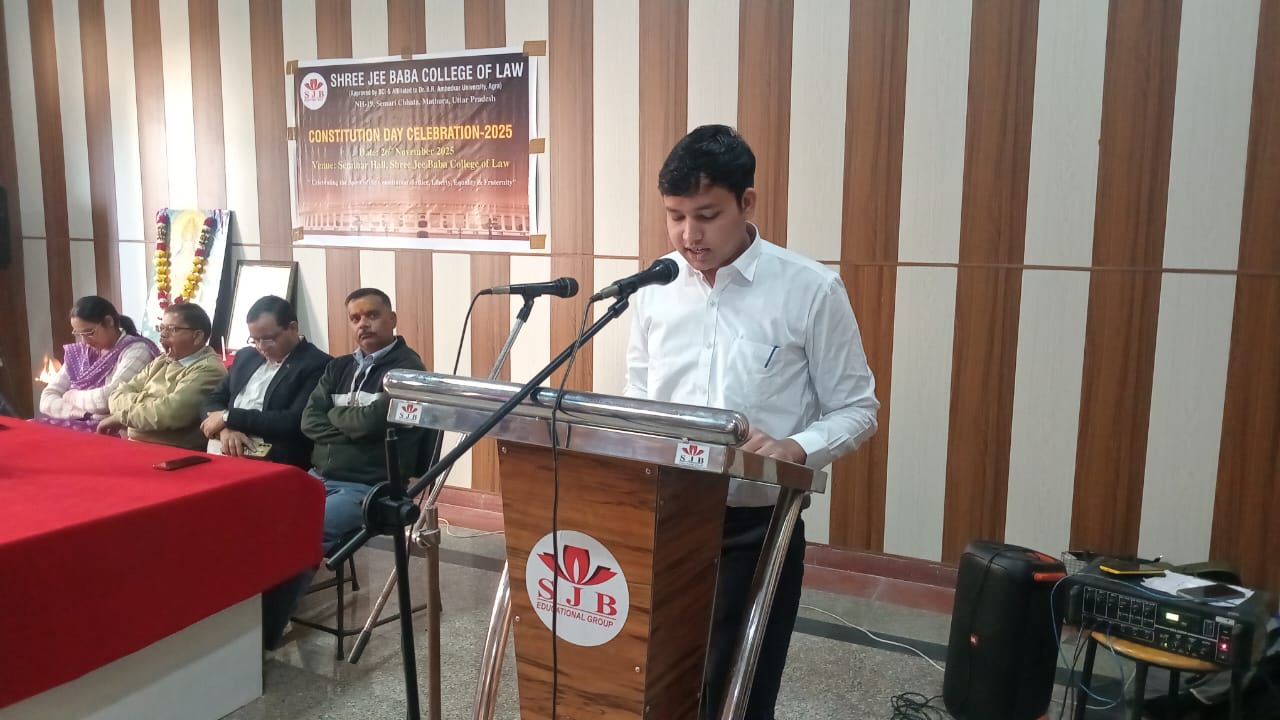 On 26 Nov. 2025,, the Constitution Day Programme was conducted at Shree Jee Baba College of Law. Students participated with great enthusiasm and dedication. The programme began with Saraswati Vandana , followed by the Preamble pledge and an insightful discussion on the Indian Constitution. Certificates were distributed to all participants, and the event concluded with the National Anthem.